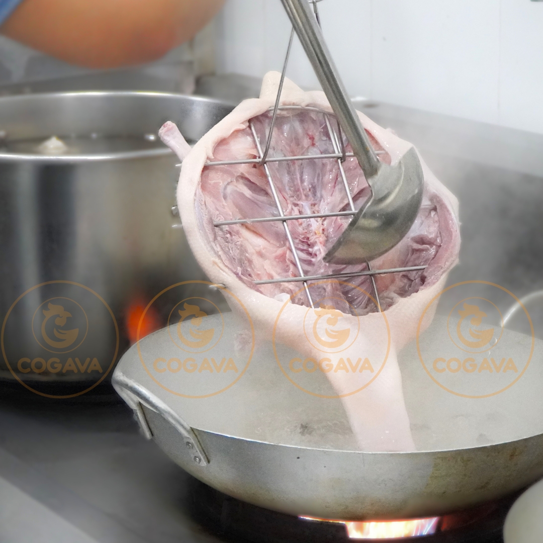 Độ giòn của da là tiêu chuẩn vàng để đánh giá một con vịt quay chất lượng. COGAVA hướng dẫn học viên các bước xử lý da khoa học, từ cách dùng nước xối da độc quyền đến kỹ thuật sấy khô, ướp, quét bột. Đây là kỹ năng cốt lõi giúp món ăn của bạn chinh phục ngay cả những thực khách khó tính nhất.